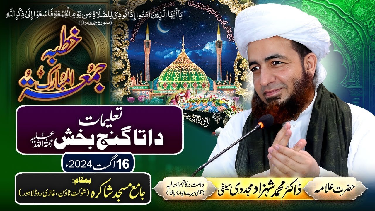 Khutba Jummah | Taleemat Data Ganj Bakhsh (رحمة الله عليه) | 16 August 2024 | Allama Shahzad Mujaddidi